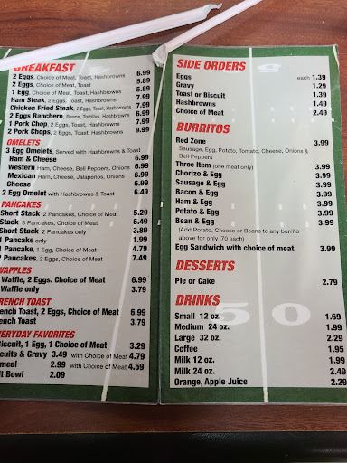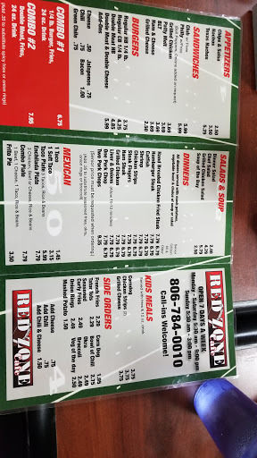 My Wife and I LOVE Red Zone Cafe! They have many options on the menu from chicken fried steak to club sandwiches. They have the tastiest double cheeseburgers with curly fries! All menu items are made fresh to your order. Its also great that they serve breakfast all day. My favorite is the 3 egg Western Omlet with hash browns and a side of refried beans, plus two tortillas. The place is very clean to include the restrooms. The waitresses are super friendly and their service is fast. It has a comfortable old diner feel to it and the walls are adorned with Texas Tech and Dallas Cowboys pictures. The people you see eating here range from blue collars, old timers, young families and college kids to business professionals, law enforcement, and first responders. Id rather eat here any day of the week. They have plenty of seating but plan to sit a few minutes for the lunch rush. Parking isnt bad as they are in a plaza. I just cant say enough good things about this place. Yall just need to try it out. Thanks!
