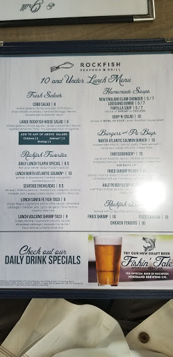 My family and I couldnt decide where to eat because we were new to the area and we were unfamiliar with the locations restaurant scene. We finally decided to stop in to Rockfish as a compromise. Once we entered the restraunt we noticed how laid back and comfortable the décor was and then we were greeted by a lovely hostess who was more than willing to answer all of our questions. Shortly after being seated our waiter arrived with our menus and gave us his recommendations. It didnt take me long to decided what I wanted. The menu was a decent size I didnt feel overwhelmed at all. But I decided to go with the crab stuffed flounder and I dont regret that decision at all. It was a decent price and the portion size was very generous. You could taste how fresh everything was and the care that the chef put into the dishes. Our waiter was ontop of our needs and was extremely friendly. I highly recommend this restraunt to anyone visiting the Lubbock TX area. Enjoy!!