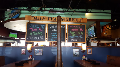 great atmosphere, service, menu is great better than chains, side salad to die for, salmon always good or po boy shrimp blackened.. better than most places in town