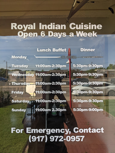 We visited Royal Indian Cuisine last night for the first time. Customer service was great, very knowledgeable. The food was OUTSTANDING!!! We ordered Chicken Samosa for Appetizer and then Lamb Kadai, Shrimp Curry and Shrimp Tikka Masala. He also made us Spinach Chana Dal (lentals with spinach) that wasnt on the menu. If you have never ate Indian food, I suggest going to the lunch buffet. And the only day they are closed is Thursdays.
