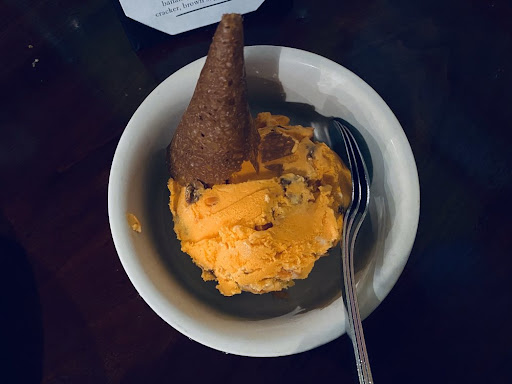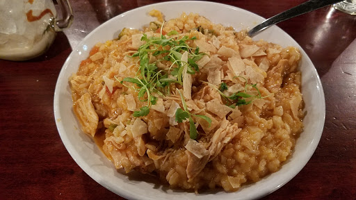 Wow. I mean WOW. I have lived in Lubbock over a year and tried many places, but this is the first both food and service were excellent. We went on a Friday evening about 6, were seated right away and got the delightful waiter named Jimmy. When I inquired about a draft that was new, Saint Arnold Winter Stout, he quickly offered to bring me a sample. While it was quite a nice stout with no overpowering seasonal spices in it I decided to go with Breckinridge Vanilla Porter ($5), which our server heartily agreed was one of his favorites. When visiting a place for the first time I usually go a little overboard, to try a big a sample as possible to allow that one dish might be having trouble for the night or that my tastes dont align with the dish. For appetizers we ordered the Pickle Jar ($7) and a cup of squash soup ($4). The pickle jar came served in the same style mason jar that they bring the water in, it was packed with a vegetable medley (carrots, green beans, cauliflower, peppers, cucumber, pearl onion, and okra); while I generally avoid sweet pickles, the sweetness blended very well with the brine flavorings and I actually helped finish the whole jar. The butternut squash soup was served with dollops of chèvre and drizzled with oil. The oil and cheese was a nice compliment to the soup but the spoons I got with neither made me wish for a little more from the main soup body, maybe just a little more pepper? Still it was a solid good soup. For the main course I ordered the scallop appetizer ($12) and my companion the meatless chopped steak ($10) with grilled salmon (+$7). My entree was fabulous. I was a little worried at first as my scallops were not warm, but I think that was just because they had seared them perfectly and they lost their warmth to the plate. The three scallops were served on small puréed mounds of orange (butternut squash) and green (broccoli), but after the perfectly cooked scallops the real star were the (in house made!) bacon and Parmesan tortellini. Sadly there were only two of these delights, but I selfless offered up half of one to my dinning companion and he agreed that they were delicious. When out server came over to gather the dishes, I agreed that his opinion of the tortellini was not overrated, he said he had been rallying for a dish of just them and I would love to try that. As for his main entree, the salmon was cooked perfectly (the only downside in my eyes was the char from the grill, which personally I am not a fan of), but quite tasty. My companion was a bit surprised by the mound of greens on top his dinner, all of which were fresh with not a hint of slime, discoloration or limp ness), but under was the real treasure. The mushroom sauce was served on the bottom and all the mashed quinoa, beans, carrot and celery on top of the sauce. I dont know that I would really think of steak when eating this dish, but it was hearty like a meatier dish and all the mushroom lent it a lovely flavor. By this time I was quite full but had previously read over the dessert menu and wanted to take one home. Jimmy helpfully offered that the Banoffee pie and brownie were the two best, as me and my companion had already discussed the brownie we went with that, although Jimmy warned it would not be as pretty as if we ate it there. Upon getting home I had to cave and have a bite of the dessert. It was quite magnificent. The orange in the cream really came out and kept all the chocolate from becoming too overpowering and rich. Even my companion, who notoriously has trouble with subtler flavors could taste the orange in what was clearly house made whipped cream. A truly wonderful experience and I look forward to going back. Truly a wonderful experience and look forward to going back.