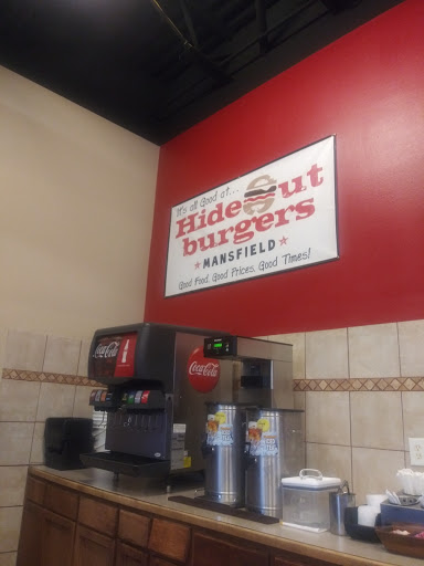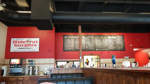 Hideout Burgers in Mansfield is one of our favorite places to go to for delicious hamburgers. Weve been coming here for about 5 years now and even though we live in Fort Worth we will drive here just for the burgers. The choices you have are endless and out of this world. The onion rings are handmade, big and fat with a crispy coating served with ranch and not at all greasy. Everything is made to order so its fresh and hot when you get it. We love Hideout Burgers! =)
