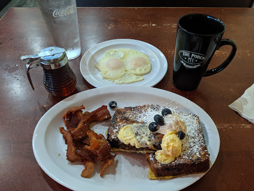 First visit to the Porch. The waitstaff was attentive and the atmosphere was nice. The food was pretty standard. I had a breakfast sampler plate, good tasting, but average.