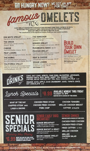 Ordered a Denver omelette...meh! Service was meh-minus. No pleasantries- nor even a smile- when we sat down. I kinda felt like we were inconveniencing them. Waited 15 minutes for a coffee refill, and finally got up to ask another server who was walking into the kitchen. Rather than just getting me the coffee, she just said "Ill let your server know." So I waited another 5 minutes! Mansfield has much better breakfast options!