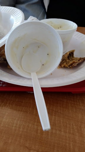 Horrible service, bland food and lazy employees. Made us wait 5 minutes at the drive thru intercom before coming out to tell us it did not work. After which the girls starts to take the order by MEMORY which was a disaster. Then come to find out they dont "allow" kids to have french fries with their meal, apparently the portion is so small they refuse to make them. We eat out twice a month, when we do all 7 of us eat out and we only do it on grocery day like so many parents I know. Which means we will be eating in the car. What kid wants mashed potatoes, cole slaw or beans with their meal? And what parent will allow their kids to eat this food in the car? You are making fries for 5 older people, why not throw some extra fries in the fryer for the kids? Even the employees admit the practice of no fries on the kids meal is stupid. Their lack of customer service and inability to give the customer the food they want could explain why this place is always empty. Oh well, they lost a good 60 bucks a visit from our family.