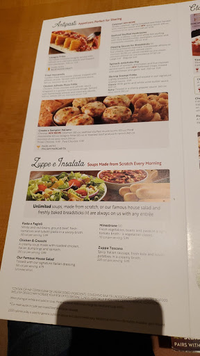 Reasonable prices and great wait staff. Love this place if only for the unlimited soup, salad and bread sticks. The Toscana soup is the best soup (and most popular) on the menu. They always have awesome deals here like buy one take one and the $5.99 soup and salad. The waits for tables arent too bad and its a pretty great place for a date night.