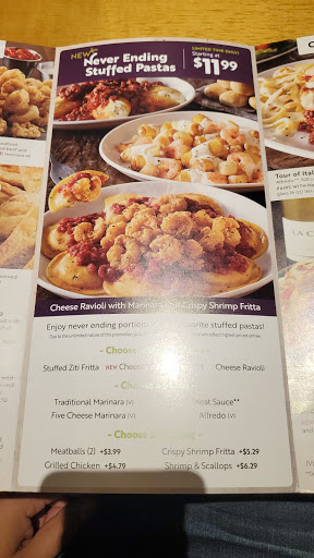 Food is always good. We take advantage of the neverending pasta when they have it and it hasnt dissapointed, yet. Service may feel rushed sometimes because theyre trying to turn around fast but I take my time and leave when Im ready. I dont like the amount of refills I get to go down towards the end because they want me to leave. Thats like blinking the lights at a party. It should be about quality, not quantity, but thats what you get when you dine at a corporate chain.