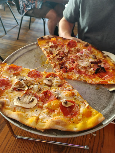 I had been to the pub on a Friday night a few weeks ago when the place was packed. It took about 50 minutes to get our pizza and the pizza was good. The live music was a little too loud for comfortable eating. Forget about talking to the people at your table or the wait staff being able to hear your order. We went back on a Tuesday nigh. Maybe one third of the tables were full and the piped in music was not too loud. However our pizza took 40 minutes to cook and all of the tables were served their food before we were finally given our pizza. It was a cheese pizza with tomatoes and was not as good as the pizza we had waited 50 minutes for the last time we were at the pub. I saw the cook putting card board in the brick oven before our pizza came out and it filled the oven with smoke. Maybe that explains the off flavor and black edges of the pizza. I believe they had given our pizza to another table that was complaining about the wait and had to start over on our pizza. Not cool. Now I am the unhappy customer. Also, I noticed the chalkboard said it was ladies night and drinks were half off, but my beer was the same price ($4.50) as my husbands. The little details really make or break my experience out. Next time I have a choice, I will not choose the Cadillac Pizza Pub,