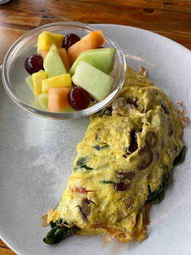 Delicious breakfast with healthy and comfort food options. I had their Tuscan omelet with fresh fruit and sliced tomatoes. It was great. The coffee was also quite tasty and our server was quick with our refills. Very good breakfast stop!