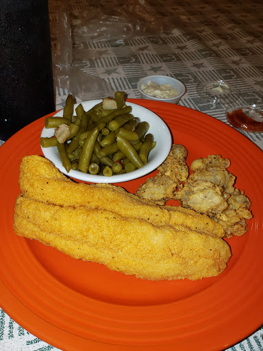 Weve been only once so far and we had a great experience! Food and service was excellent! The exterior might trick you....because its not impressive. Inside the place is as cute as it could be. Its very clean and inviting in a small-hometown kind of way. There are TVs playing sports with the volume down and (believe it or not!) an honest to goodness jukebox! What fun! We were seated immediately and were promptly served a basket of tasty piping-hot hush puppies. Our booth was comfortable. The fixins bar had lots of fresh choices including a tasty coleslaw. We ordered and were served our meals while they were still too hot to eat. I had catfish fillets and my wife ordered pollack. We were both very pleased with our selections. Fillets were large - all serving sizes were ample. I consider it to be a good value in proportion to the prices. The staff is a welcome mix of race, gender and age which closely matches the restaurants clientele. Shortly before we left a musician sat down with his acoustic guitar and began performing his "Oasis-style" smooth jazz set. The performance volume level was perfect. If you wished to hold discussions at your table you could do so in normal tones. If you wanted to be entertained by the musician instead you could do that too. My wife and I actually stayed after our meal was finished until we saw others waiting for a table- just to enjoy a little bit more. His performance just added the icing on the cake of a great experience! Our waiter was great! He obviously cares about providing great service! He checked on us regularly and always seemed to be scanning tables for indication of a guest in need then reacting promptly when beckoned. We met both the owner and the manager during our meal. Both visited guests and came to our table at different times during our meal to be sure everything was perfect. It was! Everything was excellent! We will be back!