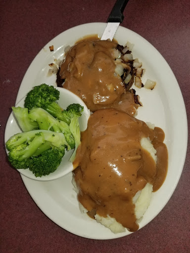 Good food, all kinds, breakfast all day, really nice and thoughtfull staff. Thick juicy burgers, crispy, non greasy onion rings, yummy pot roast, good pancakes... only one thig, since at a motel area, Monday mornings on holiday weekends are pretty busy. But still worth it!