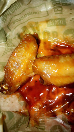 As soon as I walk in the door I look at the guy standing behind the register on his cell phone and he did not even notice me standing in front of him until I finally said something to him. He took my order and I sat down to eat. As Im eating I noticed another employee on the company phone making what seemed to be a personal call. She was on the phone for my entire meal. And she had her own personal cell phone because she pulled it out of her pocket and was playing on it while still on the work phone. Horrible customer service. But then again what wing stop does have good customer service.