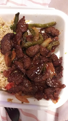 Gross! I ordered the peppered chicken and Beijing beef. The beef was kinda stringy and tough, but the chicken was horrible. The first three bites of meat were solid chunks of fat and/or skin. I then had to pull each piece of chicken apart to separate the meat from the globs of fat. The fried rice was so greasy, it was almost inedible. My coworkers that were with me left most of their food for similar reasons. The spices, I have to say, were fairly good, but I certainly wont go back. If youre close to this area, weve found that JK China Garden over on Renner is far superior food.