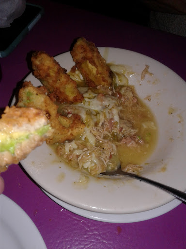 We dropped in before going over to Gruene Hall for a show on a Saturday evening. We picked a) a combo plate with chicken enchilada, chili con queso, and chalupa; and b.) chicken diablo. I love chalupas and this was right on! The food was fresh, a good amount, but not an overage. The service was very good. The atmosphere and arrangement (band, inside/outside seating) was just great. ** Now for a few suggestions. They had some arrangement where one girl seated people, a second took drink and food orders, and brought back drinks. But then a third person brought the food, but at the time, were ALWAYS confused as to which table ordered the food that they brought out. Surely there is some system they could use, but the looks like bad management. The other problem was that they charge a dollar for another bowl of salsa, after you have finished the small bowl they bring you for free. This doesnt make sense. We bought an 18 dollar pitcher of margaritas, plus two meals, and they want to charge us for more salsa? Ridiculous.