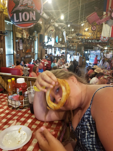 German immigrants settled Texas mostly coming into the US from the port at New Orleans. In my "hill country" hometown there are two kinds of names, German and Hispanic. Clear Springs, near the Guadalupe and Comal rivers, was the focus of immigration between 1836 and 1845. During this period Texas was a republic, a nation between the United States and Mexico. Most locals spoke some English but most certainly either German or Spanish. The land on which Clear Springs Restaurant now stands was originally surveyed by James Bowie, a hero of the Alamo, in 1825. The restaurant was built in 1873 for storing cotton then transformed later into a community center used for dances, parties, plays, school functions, and political rallies. The historical atmosphere of the structure and memory of the early German community has been preserved. When you mention Clear Springs back home we all understand (1) real country cooking, (2) fried catfish and (3) Lone Star beer. Sure, they have chicken fried steak because every restaurant in Texas has chicken friend steak. In fact, come to think of it, everything is hand breaded, spicy recipe, and fried. If you just must have something else try the blackened catfish or Cajun gumbo or grilled steaks. Order the locals favorite, "Texas Onion Rings" as an appetizer, to go with the first few beers. Pick up a "Lord of the Onion Rings" t-shirt when you stop by.
