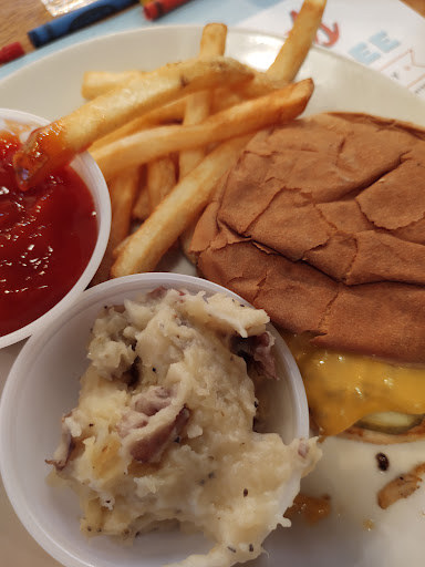 They have the best cheese fries ever; heart attack on a plate. I also like the salmon healthy-choice meal. Everything else I have tried was too salty. I can tell they are catering to a certain crowd though, and it isnt the 18-45 one. Cold beer, which was a surprise to me. In all, we will return because of the location and the kids like it.