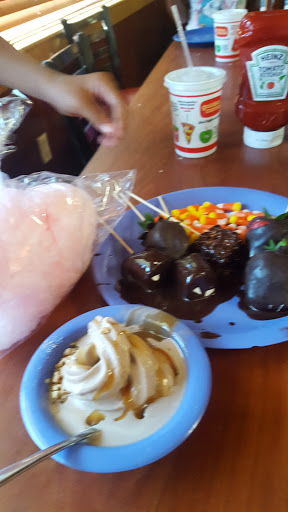So, tonight my Mom and I went to Golden Corral. (This was our first mistake.) We decided to go there because we couldnt figure out what we wanted and they have a good selection of food. (Us thinking that they had a good selection of food was our second mistake.) The selection of food included burnt pizza and food that was labeled wrong. The buffet line was missing yeast rolls most of the time (Which, lets get real here, that is one of the reasons to go to Golden Corral.) and candy toppings for the soft serve ice cream. There was ice cream that you could dip yourself, but there was no scoop to scoop it... The buffet line did have a really nifty chocolate fountain, but as my Mom was getting her dessert a little boy ran over, stuck his finger in the chocolate, stuck it in his mouth, and then stuck it back into the fountain. (Very unhealthy and disgusting.) The entire time we were at Golden Corral they only had one place out of four that had forks. (They did have spoons at each place, but they were PLASTIC!) Now come on... how can you be out of regular spoons and low on forks?! They only had one person at the front to get people drinks AND ring people up for their dinners. Our next mistake was thinking that the waitress would be competent enough to do her job. Not only was she not able to handle the four tables she had, but she did not speak English. She was way more interested in conversing with the people at her tables (every table but ours) than doing things like clearing off the dirty dishes from our tables and refilling our drinks. Speaking of our drinks, we waited and waited and waited for our waitress to refill our drinks, but she never did. Eventually my Mom got up and went to the front to refill our cups. (You would think that after that the waitress would wake up and start to do her job, but no.) We waited another ten minutes for her to bring my cup back and she did (after my Mom got up and said something to her about it.) I talked to the manager about the situation and he not only lied to me (because he said that it was the first he was hearing about this which was not true because he was standing with our waitress when my Mom told her about my drink.) but he also never, not once, ever told me he was sorry about anything that happened. Needless to say, this will be the last time we go to this Golden Corral. Do not be fooled, they recently had the location "renovated", but only the inside. If you ask me, they need a total "make over" on their servers and management.