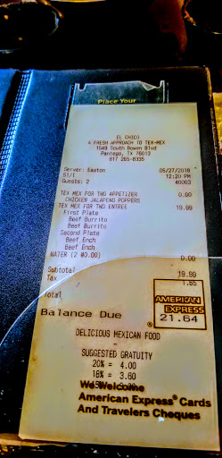 Big, big fan of Mexican food. I live in NH so Mexican food around here is lacking the Mexican aspect. Every time I go to Texas we go to this location of El Chicos. Its so freaking yummy!!! Prices are perfect for a night out with extended family. Drinks are made perfectly and the staff is awesome.