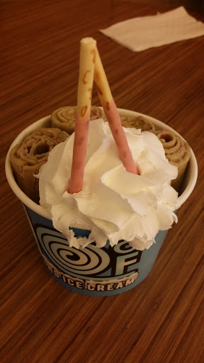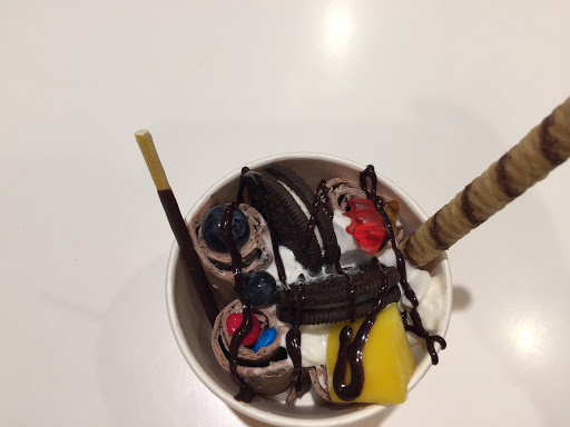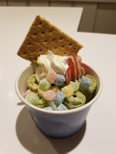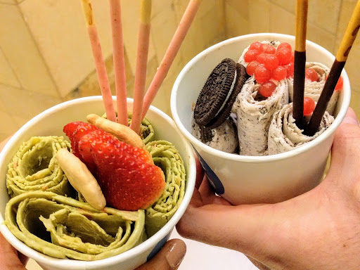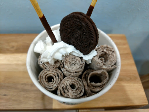 Great place for rolling ice cream in North Dallas. First you choose your base flavor then additional two flavors, but more flavors after that is an additional cost. Then.... you pick your FREE unlimited toppings! I got green tea strawberry mango and my toppings: pocky sticks, animal crackers, fresh strawberries. My husband got vanilla oreo with oreo cookies, pocky, and cherry balls. Delicious!