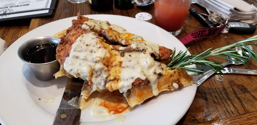 Ive been here twice and Ive come away with a mix review. On the one hand, I think its awesome that instead of traditional starter bread that most restaurants turn out with, they give you an assortment of gourmet breads and cakes. Thats easily one of their best features as a restaurant. Dont ever take that away. Their food is hit and miss, however. I ordered their McKinney Avenue scramble one time, and then their Chicken and Waffles another. I thought the scramble was decent, but there definitely couldve been more pizazz to it. I feel like if I had those ingredients, I could have made it myself at home. It needed something more distinctive. The chicken and waffles were unlike any Ive ever had before. Ive never had jalapeno cheddar waffles before, and while it definitely added a distinctive element the scramble was missing, I dont know if the taste is quite to my palate. Overall though, the place is very nicely set up. Theres ample seating on their covered patio, which is nice on warm days, and theres also ample amount of room inside. Ive never been to their bar, but it looks very cool. You can probably expect at least a 30 minute wait there on most days though, so be prepared for that. Overall, I think Whiskey Cake down the road is better, but this place is definitely a nice spot to grab a cocktail and enjoy their complimentary bread/cakes!