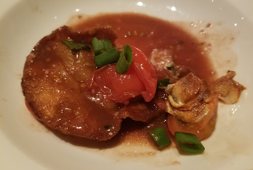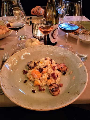 Food and wine were great. Waiter likes to push "this is my favorite" a little too much. We are wine savvy and know our likes and dislikes with respect to food and wine. Encourage waiters to ask questions not just assume people are clueless. But the worst part of the evening was the noise level. It was Wednesday evening, about five tables filled, an over 40 crowd all having dinner at about 7:30. The music selection had screeching guitar that was simply incongruous with the otherwise lovely atmosphere. We love loud, pulsating music to dance and workout to but at dinner, not so much. It ruined the evening and will probably be the deciding factor that we will not return for pleasure or business dinners. Hint: perhaps some nice jazz music in the background during dinner time