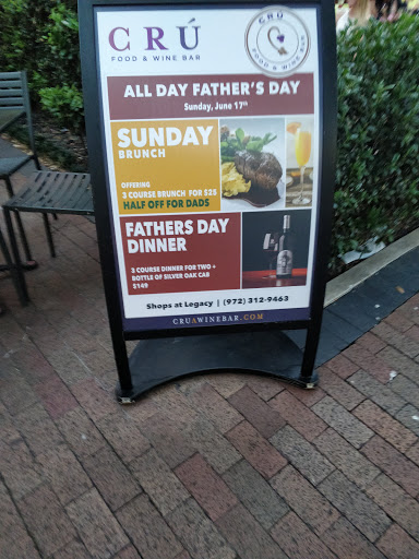 Nice wine bar at Shops of Legacy, Cru has an adequate selection and good service. Suggestions for pairing with wine tasting made the experience.