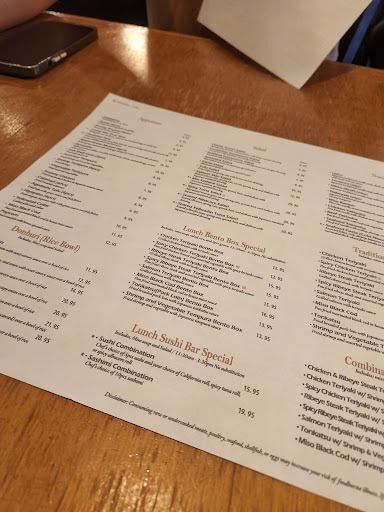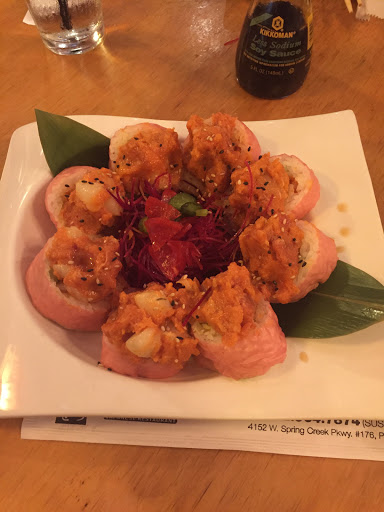 So, my husband son and I went there last night to eat. First, let me say we are sushi people all the way. This being said, seeing 113 reviews of mostly positive words had us excited. We went in and ordered the spicy scallop roll, spicy salmon roll, I love you roll, Philadelphia roll, and eel roll. We went in hungry and ready to get some work done lol. The service and atmosphere were ok, I truly have no complains about these two things. Although the sushi was not fresh, by any stretch of the imagination. It was poorly made, or was just a roll of raw fish that was completely inedible. The I love you roll was ok, although my husband thought it tasted like feet. The rest we got one bite in and couldnt eat it and spit it back out on the plate. There was only one roll we half consumed. The rest were fully intact and mostly untouched. Never being in this situation before, we tried talking to the manager and negotiating. We were immediately told if we didnt pay for it they would call the cops. I am in the service industry and have been for a very long time. So I get it, and we were not looking for a hand out. We were simply asking for them to work with us because literally everything they brought to us was HORRIBLE. So that was over 40 bucks we will never get back. Paying for a meal that was unfresh, poorly made, and expensive that we never ate. If I could give negative stars I would. I get some people love this place....but I for the life of me do not know why....eat there at your own risk.