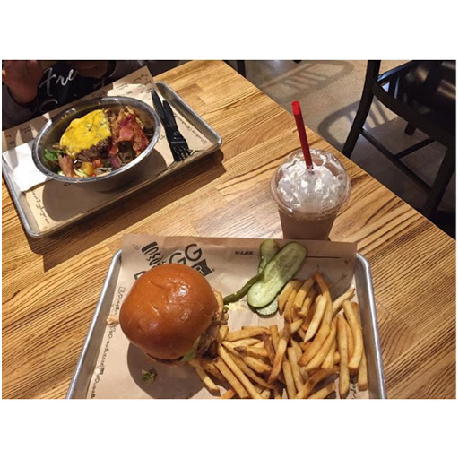 A unique concept in burger places. The staff was helpful and courteous. The burger toppings were a special treat. The shakes looked extraordinary (I did not have one). The fries were not as crispy as I like but they were ok. The big disappointment, however, was the burger itself. The patties were thin and consequently ours were overcooked (to the point of being dry and losing taste). It might help if one could specify how they like their burger cooked (I prefer medium). They also offer chicken and portobello burgers which might solve my issue but beef, after all, is the heart of the experience. Anyway, I recommend trying the Dugg Burger. It isnt often that a new concept like this comes along.