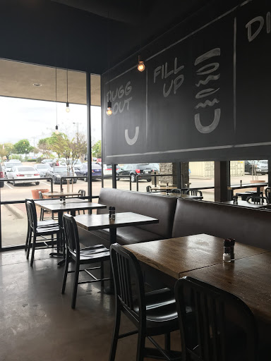 I came for the $10.40 Tax Day special, and Im really glad I did. Dugg Burger offers a great burger, with 4 choices of cheese, 12 daily toppings plus the "lucky 13", pop, shakes, beer and wine. Theres also bread pudding, which is made from a 70 year old family recipe, and uses the bread "dugg" out from the tops of the buns. You can order a la carte, or you can order a combo with fries and a drink For the burgers, you can choose from beef, chicken, or a Portobello mushroom. Cheese selections are American, cheddar, pepper jack, and Swiss, but you can skip the cheese if you prefer. The tops of the buns are "dugg" out to accommodate your choice of the 13 toppings available. Gluten free buns are available upon request, but if youd rather not have a bun, you can get your burger on mixed greens. They really aim to please at Dugg Burger! The 12 daily toppings include lettuce, grape tomatoes, dill pickles, Dugg Sauce (a spicy sauce with a Thousand Island base), ketchup, mustard, BBQ sauce, sauteed mushrooms, fire-roasted jalapenos, caramelized onions, crispy onion strings, and hickory-smoked bacon. Todays lucky 13 was picked jalapenos. Dugg Burger has shakes made with Henrys ice cream (made here in Plano), in vanilla bean, chocolate, and Oreo. For wine, there is cabernet and chardonnay. I suggest having a beer because the local beer selection is quite good, and the beers pair well with the burger and fries. The beers are mostly craft brewed, with the exception of Lone Star. Others offered include Local Buzz honey-rye golden ale, Dallas Blonde session ale, Mosaic IPA, Blood & Honey American ale, All Call kölsch, Lakewood Lager, Dunkel Munich dark lager and Nectar hard apple cider. I suspect these may change seasonally.