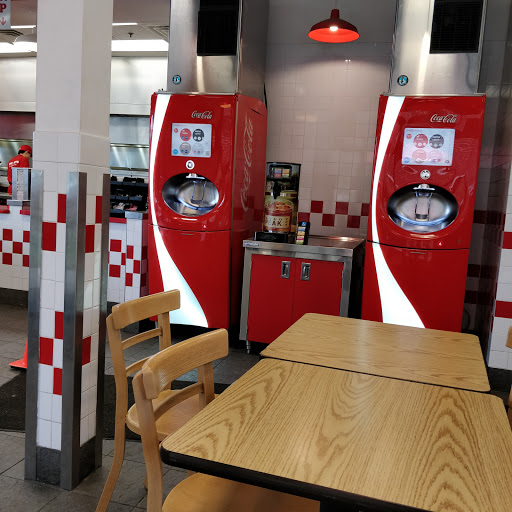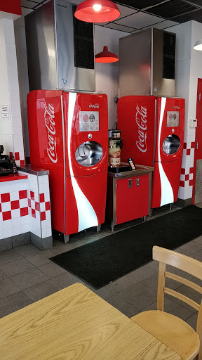 The burgers are great, the fries are good (cajun and regular), and the service is mediocre. Theres fairly high turnover at this location. You can wait a long time for fast food here because the workers often dont know what theyre doing. The past two visits, the burgers were slowly made. Then someone noticed that no one had made the fries to go with the orders. Needless delay. Two soda machines with a wide variety of Coca Cola products offered. Dining room and bathroom cleanliness is so-so. When this place first opened, it was a five-star location. Has gone down hill. Needs better management. Latest visit occurred during a non-busy time. 3 employees chatted idly by the register. Tables remained dirty in dining room during entire visit. Burgers and fries for two orders were done. Instead of putting the orders together in bags and handing them to customers, a 4th employee decided to rearrange 9 baskets of uncooked fries above the vats. After several minutes, he turned around and decided to put the orders together. Clueless.