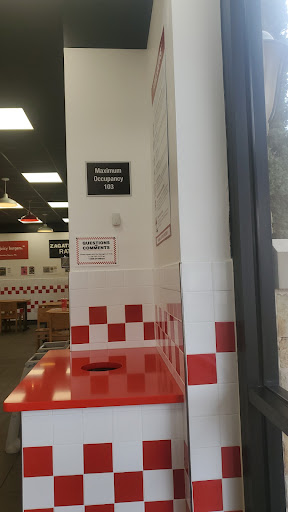 My 12 year old son wanted to try Five Guys Burgers for dinner. It was first time we ever went Five Guys. Waited 30 min to get our Cheese Dog and Grilled Cheese. Only one Cashier and one worker there. Many customers complained the waiting time. The floor near the drinking machine had a pond of water, obviously no more hands to clean it up. Not sure if this is normal in Five Guys or it just in this specific store. I went today again (since my son likes their Cheese dog) and saw they had five workers today compared only two yesterday. The Cashier still recognized me from yesterday and gave my order for free. I got my order within 10 min.