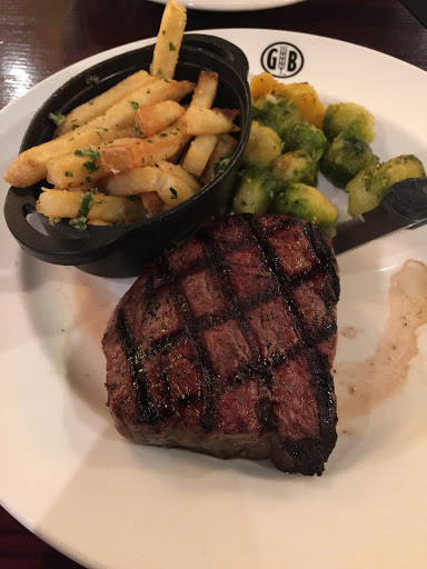 Greeted by our server Pete very quickly. Pete was friendly and knew the answers to our questions. Service was great. Food came out timely, hot, and as we ordered it. I had the gb beer mushroom chicken and it was really good. Hubby had the sirloin with the garlic fries, I snagged a fry or two, those a crazy good. Dinner companions both enjoyed their dinners, cant recall what they ordered. Indulged in some creme brule for dessert. It was good, but Id probably order something else next time. Over all really great service, really good food, Id go back :)