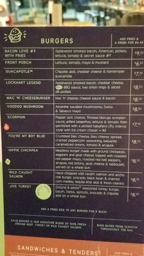 This is my faaaaaaaaaaaavorite burger place ever! ***MUST TRY: YOURE MY BOY BLUE (with blue cheese and the aboslute best carmelized balsamic onions that will literally melt in your mouth, plus deliciously flavorful arugula) GREEK CHICKEN (feta cheese and homemade taziki sauce on this yummy, soft flat bread) or if youre feeling adventurous, try the Scorpion burger for a little spice!! *Also, try the sweet potato waffle fries with the homemade jalapeno ranch, their ranch is to die for!!! The Kid-Mac Burger seems to be a popular one among my friends! The atmosphere is really cool in here and they have a really good happy hour (love the mango patron rita!). TRY THEM ALL - you will not be disappointed!