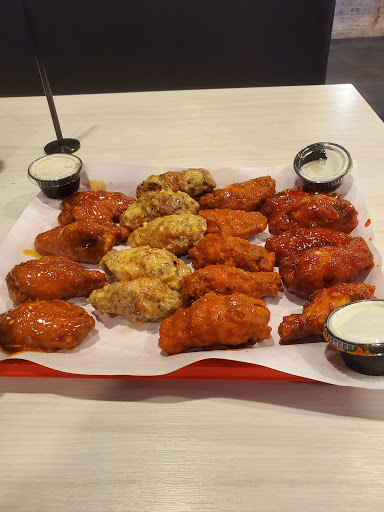 Put in my order and paid at 12:15pm. Sit down and start waiting. By 12:30pm, we saw multiple people coming from all the tables and asking what was going on with their food, theyd been waiting anywhere from 15 to 30 minutes. By 12:40pm, the patrons were basically in mutiny. No food was coming out, and everyone was trying to get back to work. At 12:50pm, we went and got our money back and had to go to Chicken Express and get carryout and go back to work. There were still about 10 people behind us that had been there before us, who were in line to get their money back as well (foodless). Its a shame because the wings and pizza looked great. We just never got to eat anything.