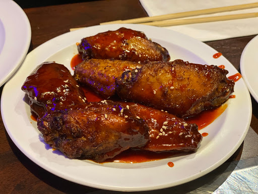 Korean BBQ, all you can eat for about $25 a person. Order steaks and other raw meat from the menu to be brought to the table, or grab bulgogi, fish, etc from the buffet. Then, cook the food yourself using the grill inset into the table. Soup, rice, and salad fixings are available at the buffet. Employees come by periodically to change out the grill-top for a fresh one; hit a button to turn on the light by the table if you need assistance. Korean music videos play silently on wall-mounted widescreen TVs. while top 40 plays over the speakers. After dinner, ginger tea and desserts are available to order. The place looks slightly fancy, but people show up in everything from jeans to business casual. Good for groups and people who enjoy the novelty of cooking your own food at the table. Show off your grill skillz, bro.