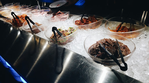 This place is gross. Theres a buffet table in the middle of the restaurant, where you can get your meat and side dishes. There were flies all around the buffet stations, and the meats are laid out in the open, vulnerable to contamination.. people misplaced the tongs (which was supposed to be specific for each meat). It didnt seem very sanitary, and I got food poisoning the next day. There are other meats on the menu that you can order that are not available at the buffet stations. Service is very slow, and our server became annoyed when we asked her to wipe down the table for us (when we were first seated). And youll be charged $20 if you have leftovers. The quality of the meat is subpar and not fresh. Save your money and go elsewhere.