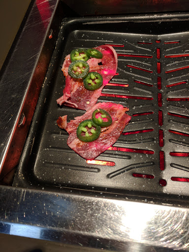 The food here is just amazing. My only complaint is that the customer service is lacking. Pros : All of the food is practically a pro. I especially liked the pork selections. The pork belly and the regular pork was good. The squid was also a very nice addition to the rest of the meats. The noodles, vegetables and seaweed were all scrumptious. If you dont want to grill too much the pre-cooked options are just as delicious. Cons : The server that we had was not very polite, but there was a slight language barrier in place. We asked for 1 lemonade which didnt show up until the end of our meal. Multiple servers came to switch out a single grill while the other was neglected completely. We walked into this place expecting table service (as in waiters coming to deliver food.) Instead we were met with a grill. If you arent one for a hands on experience then this place is not for you.