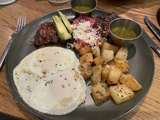 Even though it is in danger of being a little too hip/cool. This place really checked all of the boxes and then some. I ended up here by sheer chance because someone else wanted to eat here. We went for lunch. I had tacos. The server was excellent. Professional and remarkably well put together, like she was going for a photo shoot later. She quickly surmised that I wanted to try things and let me know that mixing and matching tacos was A-OK. Points! I had the following: - Carnitas taco - Spicy Habanero Chicken taco - Carne Asada taco - Brussel sprout shred (my favorite) - Beverage - Mexican Coke (sadly, their fountain only serves Pepsi products) The food came out fast and tasted great. All three tacos were good, but I found the Spicy Habanero Chicken the most interesting, even if it was not as spicy as I had hoped. The Brussel sprout shred was good, but it was a tiny serving. I guess I should say that, overall, the lunch was pretty light. Not Im-gonna-starve light, but I-will-definitely-need-a-snack light. And maybe that is good, because i was starting to develop a gut.... :-D Anyway, you absolutely should give this place a shot. Fair warning, this is like the rest of the Shops at Legacy places, where the parking is not right at the restaurant, so give yourself time to park if you are meeting someone at a specific time.