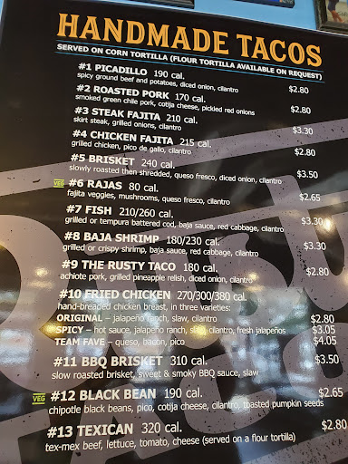 I honestly have yet to have a bad experience here. Ive been here 10+ times and each time its been awesome! My top four favorite tacos would be the Picadillo, Beef Fajita, Texican, and the Rusty, but youve gotta try them all! The orange habanero sauce is seriously the best! If theres any downside to this place its that there isnt enough seating sometimes cause its so busy. Regardless of how busy it is, your tacos will come out in no time. Dont forget they serve breakfast tacos 24/7!!! Does it get much better? I think not at $2 a taco.