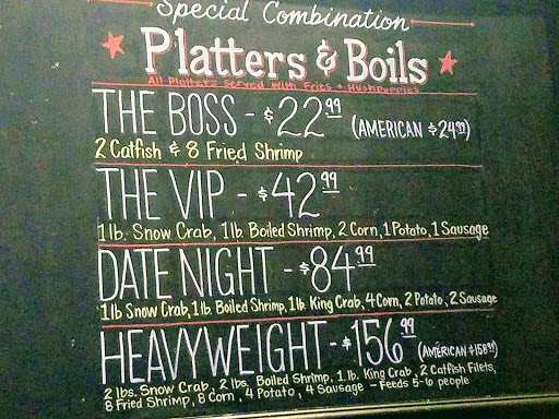 If you love crab and shrimp boil, this is your place. This restaurant uses market price for 4 to 5 crab varieties and shrimp. So be prepared to pay a little extra for a nice Louisiana experience in Plano, TX. Not only do they have boils, but they have wings, burgers, catfish and other items at affordable prices. I recommend the boils. Choose between either one of the 4 to 5 crab varieties or shrimp. Each comes at a 1 lb or 1.25 lbs. The shrimp comes in a 1lb as well, this includes the shell. You can pay extra to have them do it, but that is not worth the experience. Next choose your spices. Lemon Pepper, Cajun, Garlic or Kitchen Sink which includes all of them. Go for Kitchen Sink. Get it all. Next choose your heat level. Mild, Medium, Hot, Diablo. I normally eat Daves Insanity Sauce. So, this was like eating regular black pepper for me. My wife said, it was warm, but bearable. Remember, most of the seasoning is on the shell and not the meat. But you can sure dip it in the sauce if you want. Next choose your sides. These cost extra. EXTRA. Most people think they come with the boil for free. Nope. So, you can get broccoli, corn, rice, potatoes, sausage and a few other items. Prices vary, but 2-4 dollars. Those get put in a bag, boiled and delivered to you with shell cracker, some fancy shell separator, tray, waste bucket and a bib. Next, appetizers. I dont like hush puppies, but these were pretty good. I recommend the Crab Tators. Yeah. Go for it. Be careful. They charge extra for sauces, I think about a dollars that were not explained or seen on the menu. You will get 6 hushpuppies or crab tators. So, sharing is caring. They have a good selection of liquors. They dont do mix drinks that require a blender because they did not have a blender. The have some draft and local beers. It was a dollar off during happy hour. They have specialty drinks, but I think most of them are stirred or shaken. 10-12 dollars per drink. This is highly recommended for first dates. Because it can get messy, but teamwork is needed. Staff is great. While eating, I got carried away and spilled a sauce packet. They were kind and helped out greatly. Also, just because. Try the hand washing station. You insert your hands in this washer, it sprays for 12 seconds and you are instantly clean. Love it. If you want desserts. Go for it. There are a few, but we were certainly full.