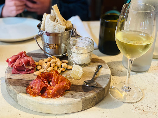 Where do I begin? I have been wanting to come here for quite a while. Very fun and casual atmosphere. Open bar area and many tables that I am sure will be split on busy days. Immediately sat down and were introduced to how they do things there. Not stuffy for a wine bar at all! Very welcoming for new winos. They give you an ipad that is supposed to help you with your wine selection according to what you order. Some options I agreed with and some didnt. We ordered a Salumi & Cheese board which had awesome proportions! I could have just had the wine and board for lunch! Huge cheese plate and quite a few options of spreads and olives. Great value! I loved all the options but none of the cheeses were "stanky". Cheese selection was very tame and safe. All were fantastic! But better selection would have been preferred. The midnight moon and the (forgive me) brie spread but not a brie spread were by far the better ones. Next we ordered the CAB flight which had the a Concannon/VineHuggers/Halter Ranch. I wanted to try the Round pond so I was disappointed about that not being included in the flight. My favorite out of the three was the Vine Huggers! But boyfriend found Concannon to be his favorite. I wish the had charms or parchment for the flights because its easy to lose which wine is which. For Lunch we ordered a Butcher Pizza and the Broccoli Rabe. Honestly this was all too much and I could have done without something since the proportions were so generous! Love it! I could have done without he Broccoli Rabe, I think it could have been prepared differently without the red pepper flakes just not a great combo in my opinion. The butcher pizza was TO DIE FOR! Reminded me of a similar dish at Cane Rosso but 10 times better! Couldnt finish and it made for a great drunken snack later that night. Our waiter was new, but very friendly. I think the wait staff is encouraged to educate you on our selections of food and drink which was so fun! But we were checked on so often that we couldnt talk about the food because we havent tried it yet! Decor was on i! The white granite bars, sliding barn doors, and gold front burner stove. My kind of place! Will be back for sure!!