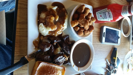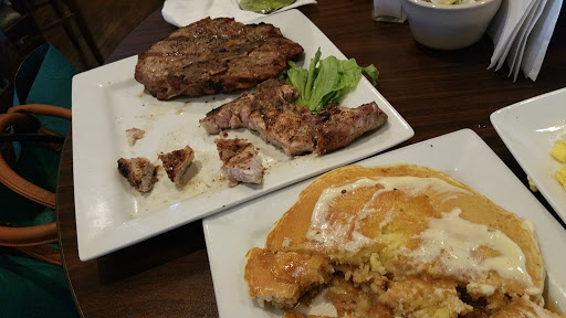 Waiting 10 minutes for someone to show up to find us a table should have been my first clue. I am not sure they have anyone busing the tables so the waitresses and hostess seem to be doing it. Which made all the service slow. Would say that if you have small kids do not bring them because of the speed of service. The place was full so I thought that the food would be good. It wasnt. I tried what looked to be a signature breakfast since it was on the top of the menu in its own oval, chicken fried chicken with eggs, hash browns, and biscuits and gravy. When it came out it looked good. Definitely enough food, if it was edible. The eggs didnt show to begin with. The biscuits and gravy where ok and the hash browns were good. The chicken fried chicken was inedible. It tasted like it went from the freezer to the microwave to the plate. Like chewing on rubber. My wife had the Cajun omelette, with "blackened" chicken. Guess their definition of blackened is different and the grits were tasteless. On a positive note the kids enjoyed their scrambled eggs, pancake, and bacon. Scratch this one off the list...