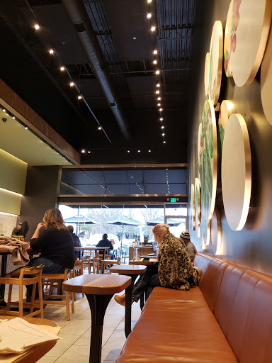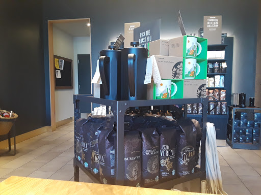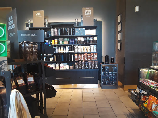 This Starbucks is cozy and open late. This one doesnt have a drive through. The main drawback is that the parking is inconvenient on weekend evenings, because it doesnt quite make sense to use the valet just to pop in for a coffee and the valets have almost all the spaces around this Starbucks coned off.