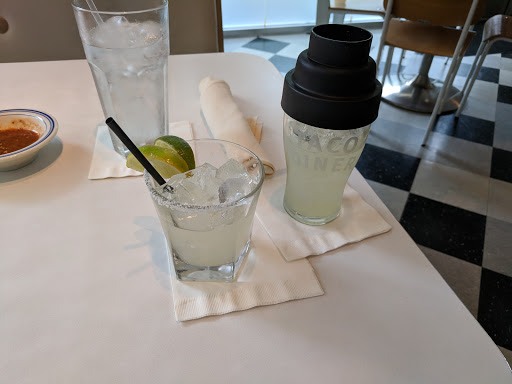 I decided to see what the buzz was about and went to Taco Diner in the shops @ Legacy. I was alone so I sat at the bar. I ordered the brisket tacos which were great! I ordered a margarita on the rocks, which the server up-sold to top shelf. Apparently all top shelf margaritas here are the same price, $14. I did not know this until the bill came. I was not offered a choice of the many tequilas, the server browsed the selection and settled on Sauza Hornitos. Good but hardly worth $14. The server than hand made the margarita it in a cocktail shaker which had previously been used to make a Mojito and not cleaned out afterwards. So my $14 rita was full of little bits of chopped up mint leaves. The server saw nothing wrong with this. Not exactly the way I like it. I wouldnt have accepted the drink if Id realized the cost. I thought it would cost $10 at the most! Also, before I left I watched a female server knock over a container of clean forks onto the floor, then simply pick them up off the back bar floor and put them back into the service tray like they were still perfectly clean. She saw nothing wrong with this!