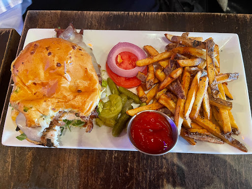 Very nice bar atmosphere. For lunch, my favorite sandwich is the brisket sandwich. The sauce they use is fantastic! Ive also tried the veggie sandwich which is equally good. Service is mostly good.