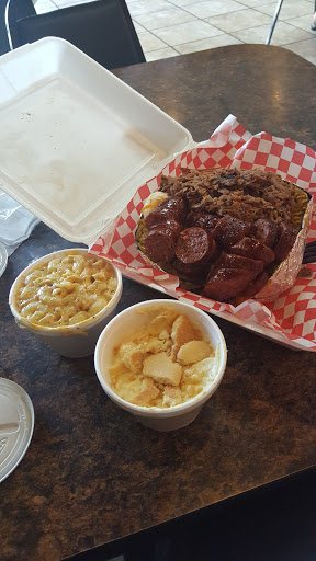 Sausage was good. Ribs were good. The dry rub on them was a little sweet and a little spicy. The pulled pork was also seasoned well and very tender. My son ordered a baked potato with pulled pork and it was the size of his head. All the portions were generous. My other son ordered the brisket sandwich and it was stuffed as well. Had to be a pound of meat on it. My sliced brisket had a good flavor but I was disappointed that it was dry. The sides were good and I liked the smoky flavor in the mac and cheese, seems like they may mix in some brisket drippings to add flavor. Will try again and hope the brisket is not dry the next time. Overall enjoyed it :)