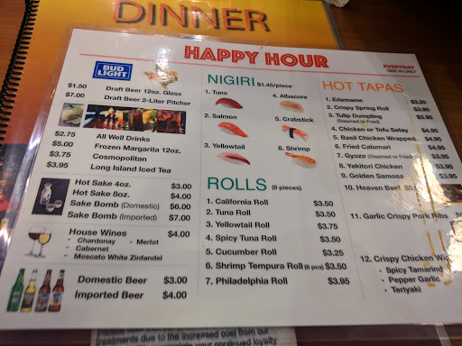 80% de la main-dœuvre du Texas est le secteur des services que ce restaurant / bar ouvert tard le soir et pratiquement son marché cible. Il est un excellent endroit pour attraper la nourriture et des boissons avec un groupe damis / collègues. Esthétiquement, quand vous marchez dans vous pouvez voir dans la cuisine, dans la barre de stock, des meubles qui vous fait chaud lorsque vous êtes assis trop longtemps, le bar à sushis semble un peu élevé (ils pourraient augmenter le compteur), et trois types déclairage. Quand vous venez à la fin vous sentez leau de Javel comme ils nettoient autour de vous que vous commandez / manger. Bien sûr, il est un endroit sans fioritures pour aller à manger après une dure journée de travail, mais je sens que je suis dans le centre de lindustrie des services. Il est une petite chose, mais je pense que un architecte dintérieur pourrait aller un long chemin, lendroit a juste besoin dêtre un peu plus confortable en étant moins révélateur. Il descend; «il na pas de charme» et vous ne allez-y pour la société. Ils ont dautres endroits outskirting centre-ville de gratte-ciel par lAquarium de Dallas et smack intérieur Downtown à la mosaïque. Le seul à Plano est de voir la plus fréquente car elle est sortie de lautoroute 75.