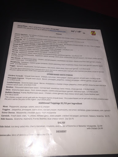 Zalat has great pizza! I love that the crust is thin and crispy. I ordered the Pick 5 yesterday night. They forgot my Basil garnish , but it pizza was still delicious. I gave them 5 stars because the service was great when I first visited them a couple weeks ago at 1 am.