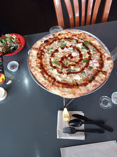 Nice pizza, quality ingredients. Decent crust. Overall flavors didnt blow me away. Fair prices. Setting is laid back. Wife ordered a side salad and was brought some lettuce in a to go box and a plastic fork. Disappointed with that. Otherwise friendly wait staff, if a bit disorganized. Overall we came away satisfied with our meal, but cant say were anxious to make it a regular go-to place.