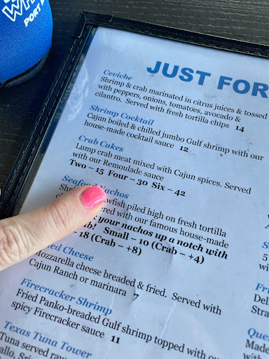 Did not know this was social drinking restrant people walking around drinking while eating distasteful kids playing out side distracting Flys on table ,got food but no silverware .this supposed to be seafood place should of used seafood stuffing instead of cornbread in stuffed redfish,seafood nachos this is not a Mexican restrant cornbread dose not work mixed with seafood!